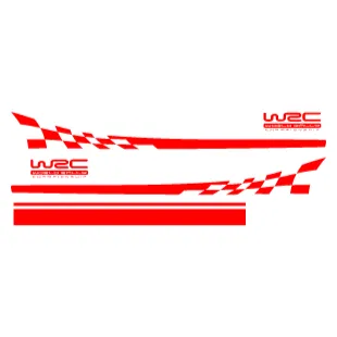 Calcos vehiculares lateraless con diseño de WRC, World Rally Chanpionship En rojo, aunque muy facilmente puede hacerse en otros colores.