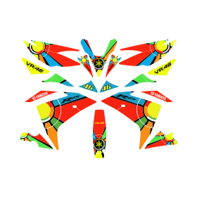 Archivo de calcos para Yamaha R15 VR 46 Diseño de sol Colores rojo, amarillo, verde, celeste